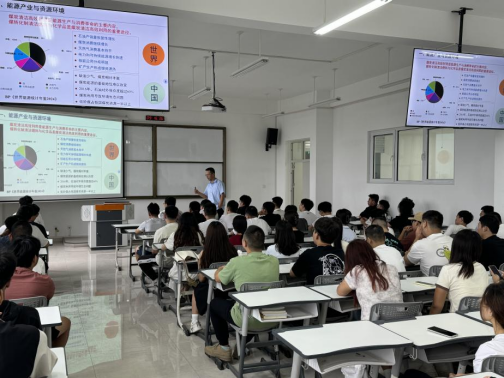 亢经理的报告特别结合了地域特色,重点关注了榆林本地的能化行业发展情况。他强调,榆林作为国家重要的能源化工基地,拥有丰富的煤炭、油气等资源,其能化行业在全国乃至全球都占据重要地位。通过一系列数据和案例,他生动展示了榆林能化行业在技术创新、产业升级、环境保护等方面的成果与努力,使新生们对榆林的能化产业有了更加全面和深入的了解。