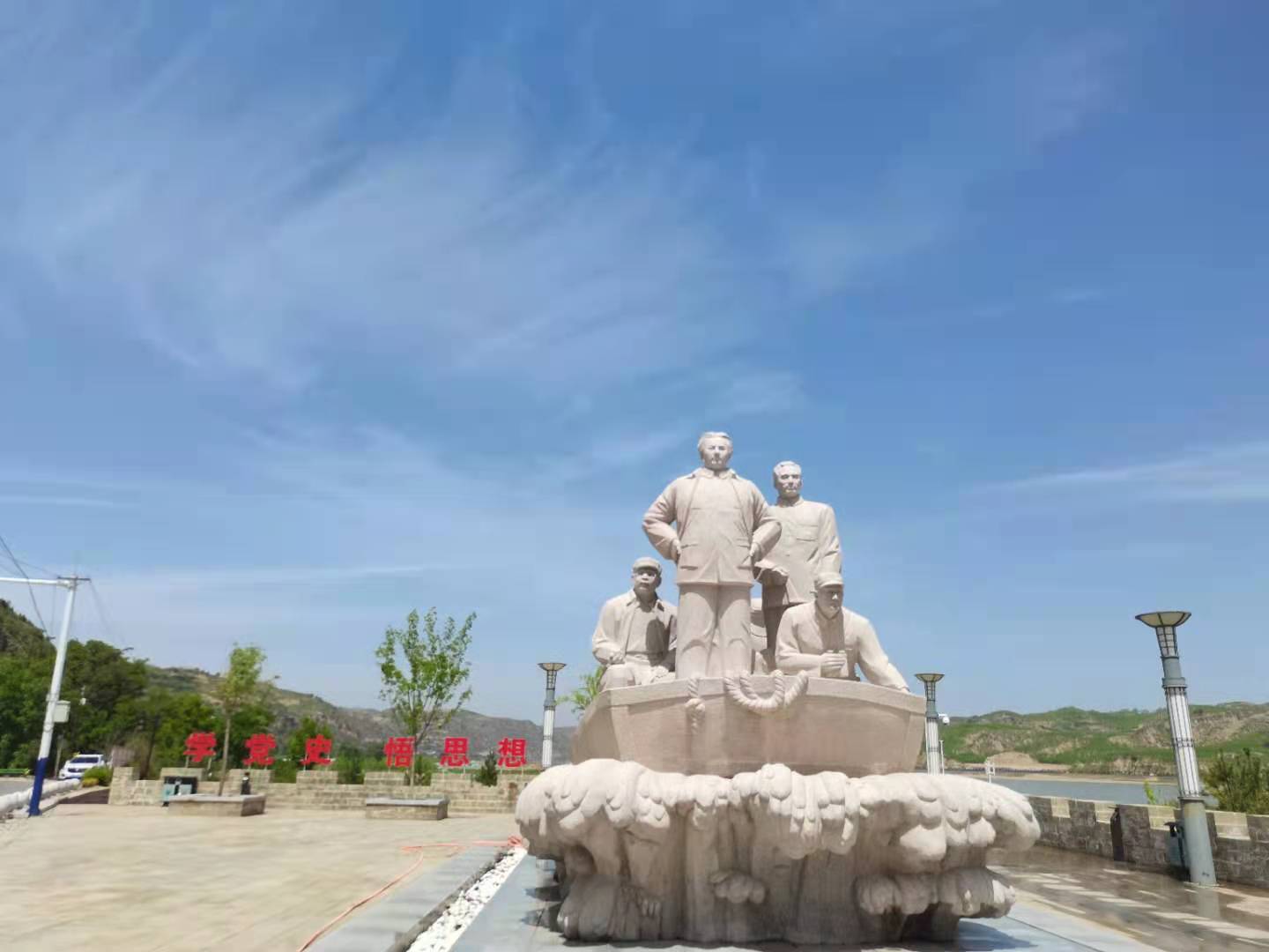 同学们在老师的带领下参观了毛主席东渡纪念碑、雕塑、历史浮雕墙等红色革命遗迹。接着,我们来到毛主席东渡黄河纪念馆,在讲解员的带领下跟随毛主席的光辉足迹,详细的了解了毛主席和中共中央转战陕北的感人事迹。