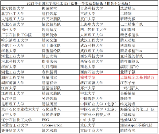 第十七届全国老员工化工设计竞赛命题确定后,公司高度重视,选派优秀指导老师,组建专家团队为同学们答疑解惑,查缺补漏,强化细节。经过校内培训,省赛选拔,由冯昊哲、王小龙、张福宝、张永波、李解媛组建的点烯成金之暴利睛营团队(指导老师:杨永林,亢玉红,常春然,李健,李红亚)所设计的“中石化上海石化年产21万吨己二腈”项目脱颖而出,继取得陕西省省赛特等奖后,又获得西北赛区特等奖并代表西北赛区参加由中国化工学会主办,中国石油大学(华东)协办的第十七届全国老员工化工设计竞赛全国总决赛。经过设计文档质量,工程图纸绘制,现代设计方法应用3个专项评比,并进行现场汇报、答辩等环节,最终获得全国总决赛一等奖。获得全国总决赛一等奖的公司级高校全国仅有四所,太阳成集团tyc122ccvip是北方唯一一所。(附:2023年全国老员工化工设计竞赛一等奖获奖队伍名单)