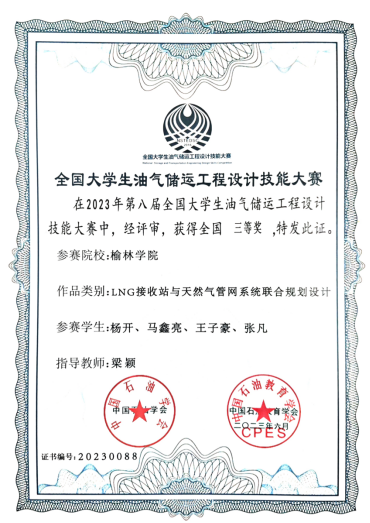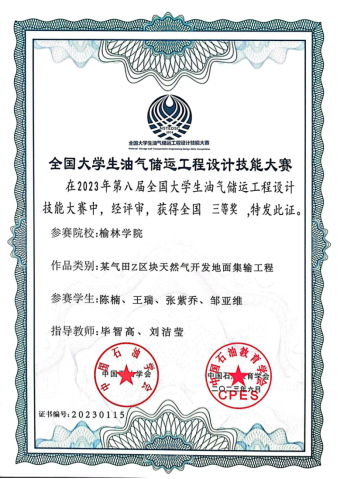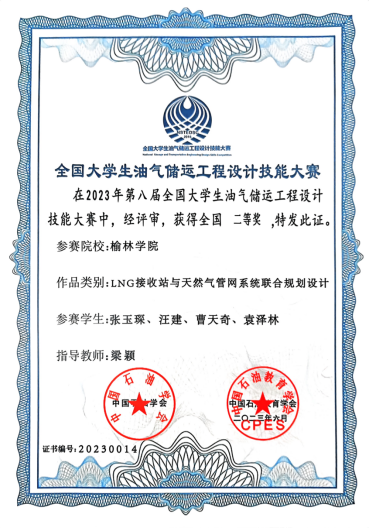 本届大赛赛题分为LNG接收站与天然气管网系统联合规划设计和某气田Z区块天然气开发地面集输工程两个,共有来自32所高校,166件作品参加全国比赛,其中66份作品进入推荐决赛名单。一直以来公司高度重视员工科技创新工作,通过学科竞赛,培养员工工程创新意识、开拓员工视野,提高员工运用油气储运工程专业知识综合应用能力。本次大赛通过专家线上评审和线下答辩的方式,公司油气储运工程专业员工张玉琛、汪建、曹天奇、袁泽林同学方案设计作品荣获全国二等奖,尚欣源、董建建、张俊杰和王卓等同学荣获全国三等奖三项,成功参赛奖三项。