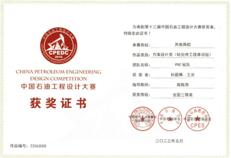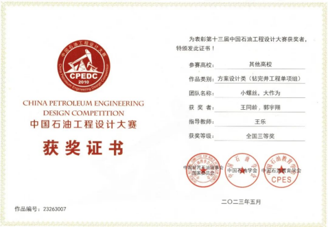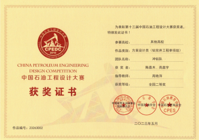 在校团委和院领导关心和大力支持下,石油工程专业教研室经过赛前宣传动员、比赛报名、作品提交、审核答辩等层层选拔,此次大赛方案设计类比赛中,公司石油工程专业员工陈嘉木、高鑫宇同学方案设计作品荣获全国二等奖,郭宇翔、王同龄、王吉和孙圆博等同学荣获全国三等奖二项,全国鼓励奖三项;曹皓亮、刘凯歌、王文静、张琪获得知识竞赛优胜奖。
