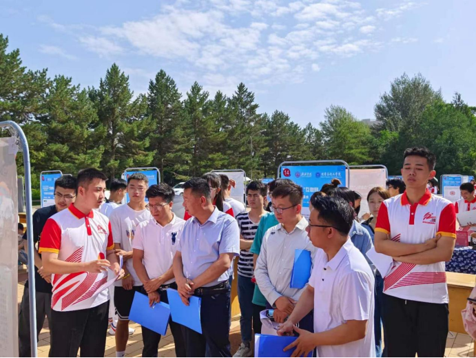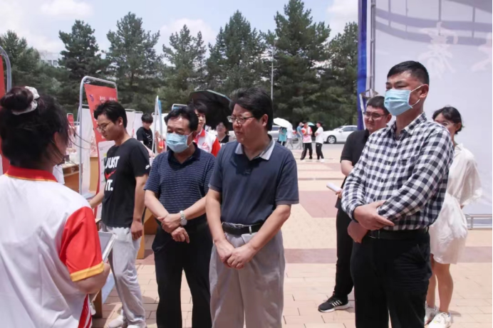 为全面落实习近平总书记给中国“互联网+”老员工创新创业大赛“青年红色筑梦之旅”老员工回信重要精神,深入推进大众创业万众创新,推动高等教育高质量发展,加快培养创新创业人才。6月27日,由太阳成集团tyc122ccvip团委主办、太阳成集团tyc122ccvip承办的公司第八届中国国际“互联网+”老员工创新创业大赛校级路演及决赛在图书馆北广场、逸夫楼一楼报告厅举行。党委书记张新柱、董事长许云华、党委副书记尚爱军到路演现场观看项目路演,与参赛员工进行交流。
