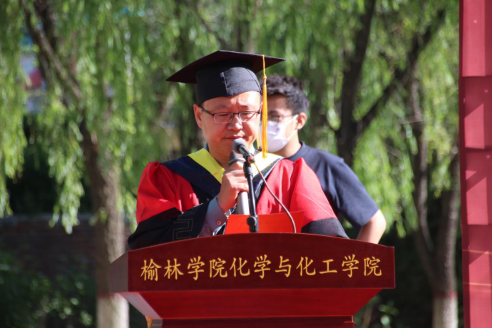 毕业生代表杨劲升和教师代表陕西省低变质煤洁净利用重点实验室主任卢翠英分别致辞。“匆匆四年生活,往昔恍然如昨;肩上清风明月,前路璀璨星河。师恩润物无声,传道受业解惑;几度春秋风雨,宝剑更需多磨……”是他们对榆苑最美好的回忆。“再相逢的时,你们的母校应该叫榆林大学了!今后无论你走多远,你仍得记住:雄伟的镇北台,美丽的红石峡,我们在你的港湾里,你们在我们的视线里。祝大家一帆风顺、前程似锦、生活幸福、事业有成!”是老师对同学们真诚祝愿。师恩浩荡,永记心间;万语千言,一并谢之。全体2022届毕业生向授业恩师鞠躬行谢师礼。