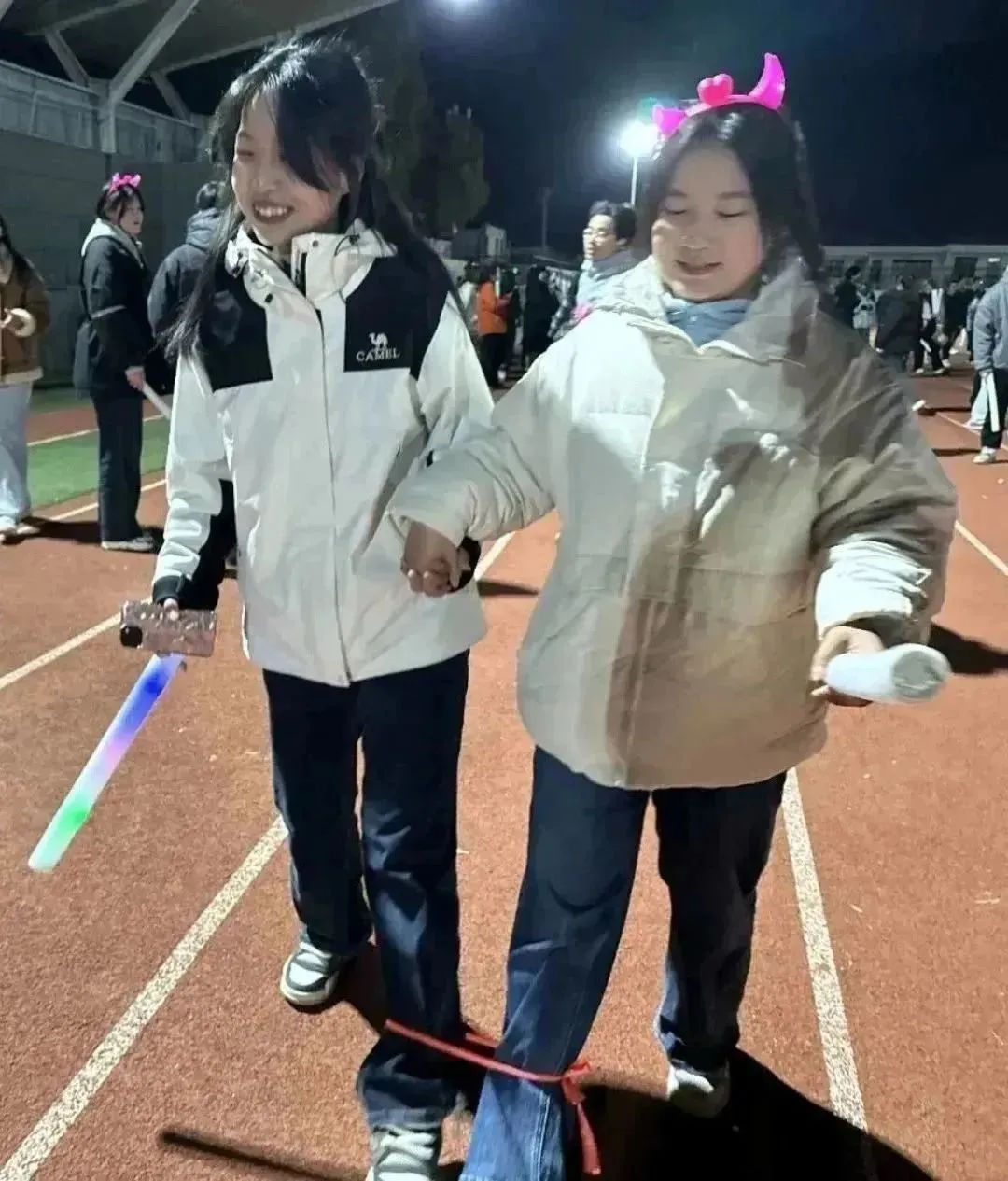 活动开始前,同学们在田径场指定位置集合、整队,由工作人员为他们进行现场签到和发放活动道具荧光手环,并由各领队带领同学们进行400米的夜跑热身活动。本次活动分为三组,每组按照规定的时间间隔从田径场出发,开始荧光夜跑活动。夜色与荧光碰撞,同学们以青春的蓬勃朝气驱散黑夜的沉寂,鲜活地展现榆苑学子意气风发、气宇轩昂的精神风貌。