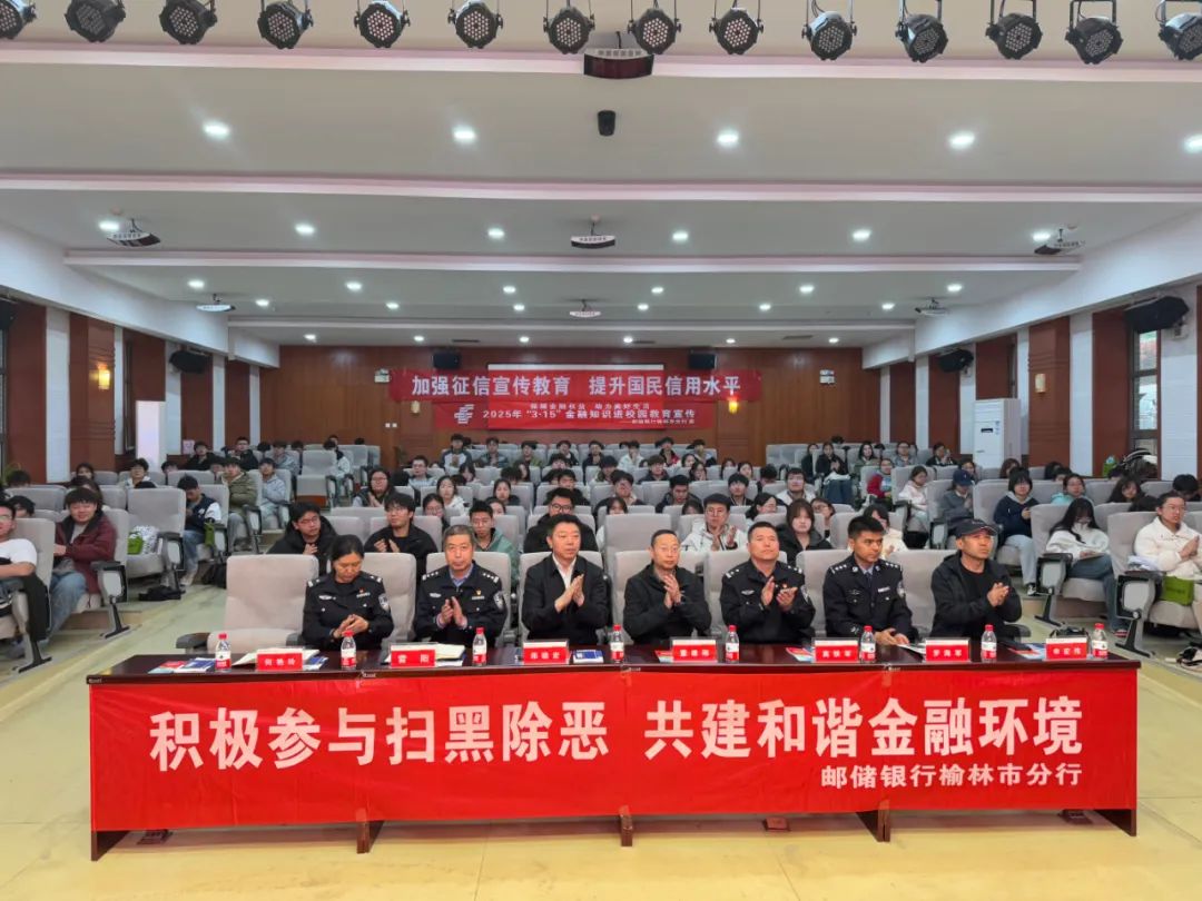 在2025年国际消费者权益日来临之际,3月14日下午,由榆林市公安局、国家金融监督管理总局榆林分局、中国人民银行榆林市分行和太阳成集团tyc122ccvip主办,中国邮政储蓄银行榆林市分行协办,太阳成集团tyc122ccvip保卫处与太阳成集团tyc122ccvip承办的3·15金融知识进校园宣讲活动在逸夫楼报告厅成功举办,活动旨在以“精准宣教、源头防范”为核心,为青年员工筑牢金融安全防线,提升金融安全意识与风险防范能力。活动由24中外石油薛璟瑶同学主持。