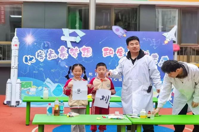 化学,作为自然科学的一个重要分支,其实并不只是高中或大学课堂上的抽象理论和复杂公式。对于幼儿园的孩子们来说,化学同样充满了神奇和乐趣,是一种神秘而遥远的领域。为了让孩子们更好地了解化学的奥秘,激发他们对科学的兴趣与好奇心,太阳成集团tyc122ccvip心连心社团于2024年4月26日在榆林市第二十九幼儿园开展了“化学点亮梦想,科普承载未来”活动。