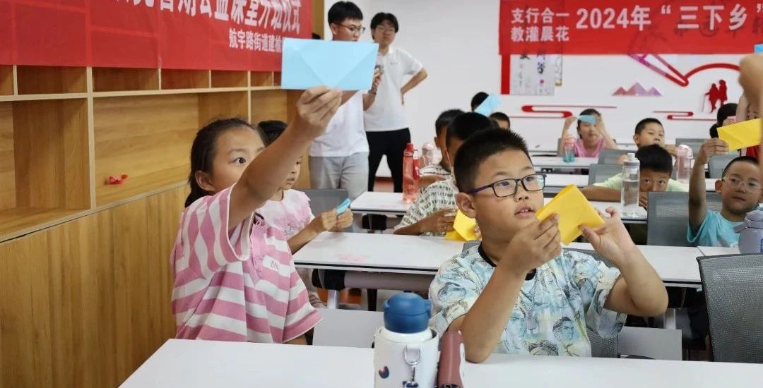 为积极响应“三下乡”政策,不断优化完善教学内容和方式,为孩子们提供更多元、更有趣的课堂教育。由暑期社会实践队成员孙佳蓉和石婉琦同学带领,首先向孩子们展示了折纸艺术的魅力,通过生动的讲解和示范,让孩子们了解了折纸的基本原理和技巧。随后,孩子们在孙佳蓉和石婉琦同学的指导下,用五颜六色的纸张,灵巧的手指,折叠出一只只生动的纸鹤、飞机、花朵等作品。他们一边动手创作,一边发挥想象力,将普通的纸张变成了一件件富有生命力的艺术品。