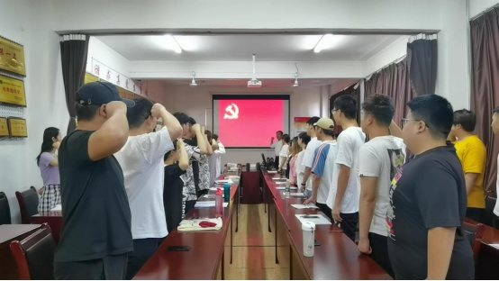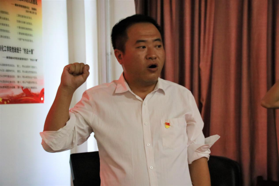 最后,公司党总支副书记王金鹏老师带领全体师生党员面向党旗庄严宣誓,重温入党誓词,这80个字的入党誓词,一字一句从口里喊出,再经由心里流过,使全体党员再一次经受了心灵的洗礼、思想的震撼。