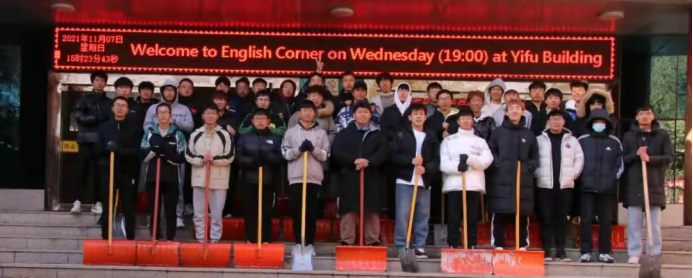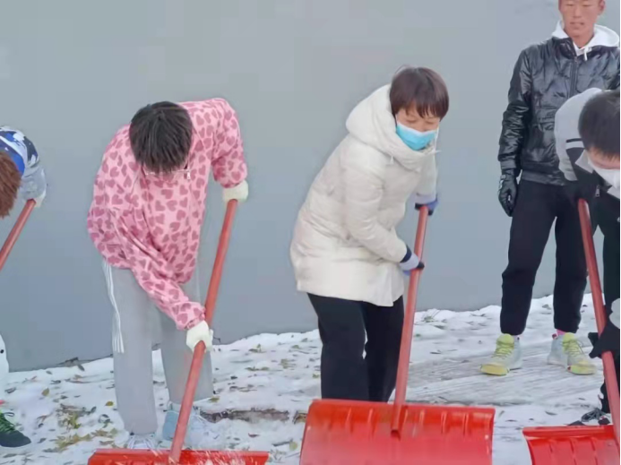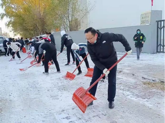 2021年11月7日,窗外银装素裹,校园内铺满了白皑皑的积雪,公司在经理常春然和团总支书记徐绘的带领下,员工会组织各部门人员对积雪和易发生滑倒的区域进行了清扫。