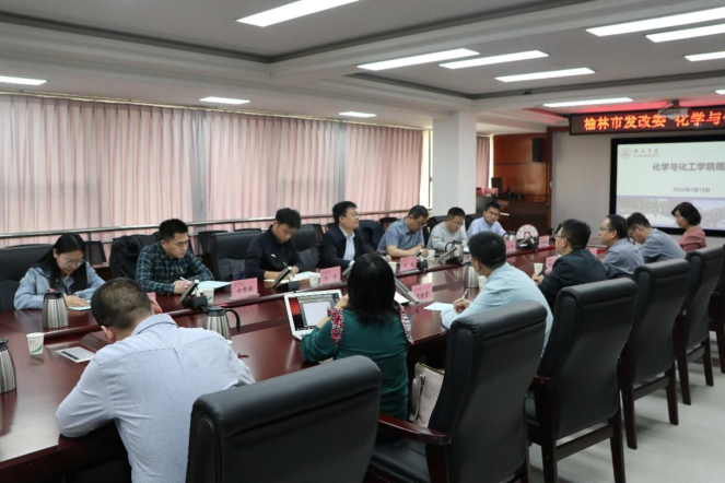 2023年4月19日下午,榆林市发改委能化科科长胡滨、环资科科长蔚伟一行来公司调研座谈,座谈会在行政楼四楼会议室举行,太阳成集团tyc122ccvip常务副经理王爱民,副经理范晓勇,副经理亢玉红,张智芳教授,李健教授及新进博士参加了座谈。会议由太阳成集团tyc122ccvip经理常春然主持。