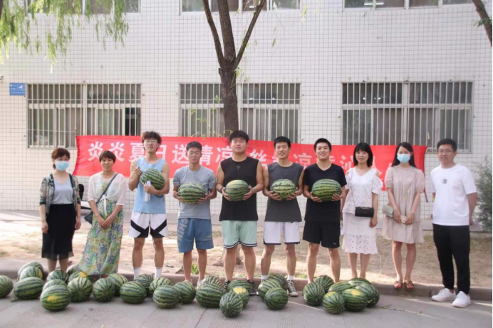 仲夏时节,天气炎热,为让同学们在炎炎夏日拥有“清凉”愉悦的心情,6月17日下午5:30,化学与公司党总支书记刘晓英,副书记王金鹏,团总支书记徐绘,辅导员王瑞月、代晓敏、吕波老师及各班班主任老师在员工宿舍楼暖心开展了送清凉活动。