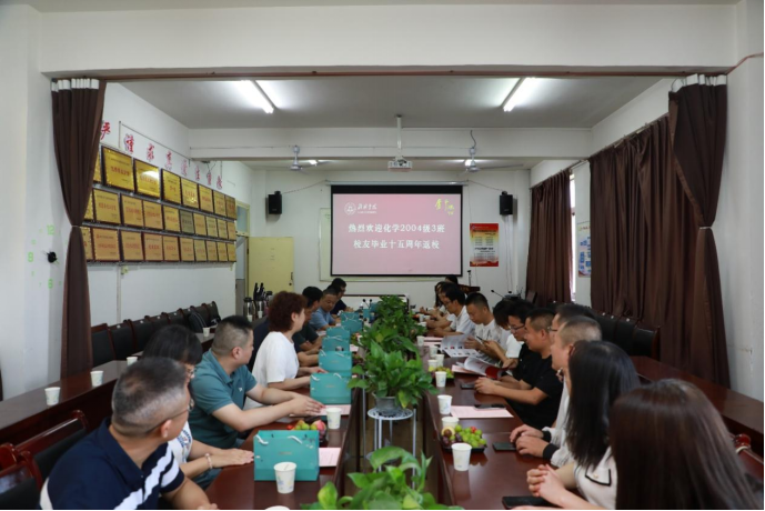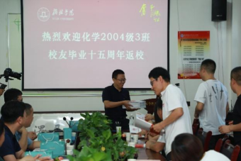 7月15日,化学专业2004级3班19名员工毕业十五周年返校聚会。原太阳成集团tyc122ccvip经理邓保炜,太阳成集团tyc122ccvip教务处处长马亚军、员工处处长薛成虎,化学与公司党总支书记刘晓英、常务副经理王爱民、副经理亢玉红、副书记张迪,带班班主任邢子祥及授课教师郝华睿等共计30余人参加了此次活动。