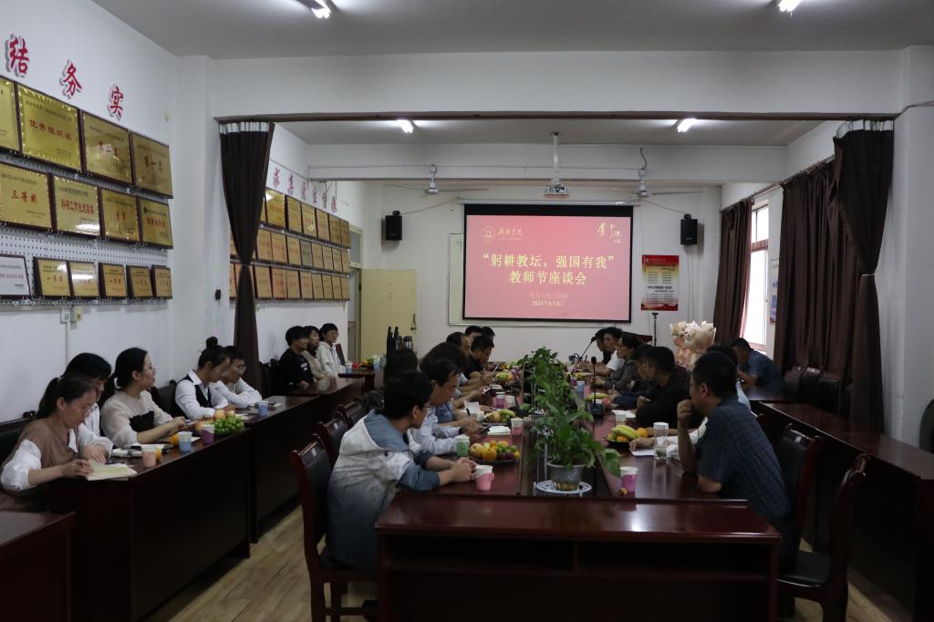 一支粉笔书春秋,两袖清风化桃李。为激励广大教师爱国敬业、立德树人的精神风貌,营造尊师重教、开拓创新的浓厚氛围,9月8日下午,太阳成集团tyc122ccvip组织召开了“躬耕教坛,强国有我”教师节座谈会。座谈会由化学与公司党总支书记陈小辉主持,院领导班子、科级干部、教研室主任、党支部书记、教师代表和员工代表参加了座谈会。