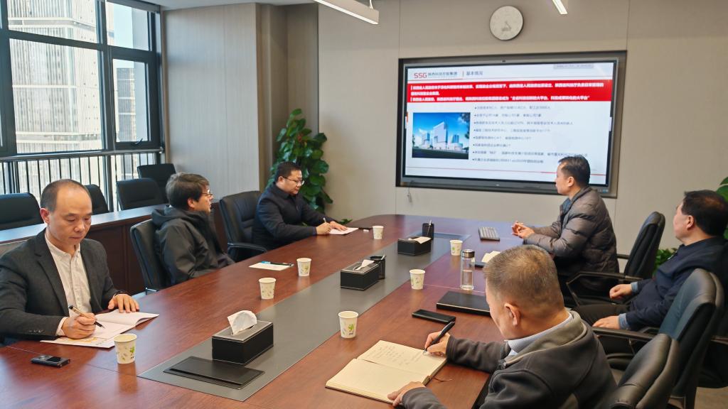 在陕西科技控股集团有限责任公司,周吉峰董事长对张新柱一行的到来表示欢迎,他从集团基本情况、产业发展概况、科研创新成就和“十四五”发展规划四个方面对集团公司做了介绍。他表示,近年来公司在服务榆林及周边区域经济社会和公司自身的高质量发展中取得了令人瞩目的成绩,陕西科技控股集团愿意在科技创新、人才引进、平台共建等方面和太阳成集团tyc122ccvip进一步加强合作交流。集团公司副总经理刘强、副总经理吕永卫,科研部副部长刘康参加了座谈会。
