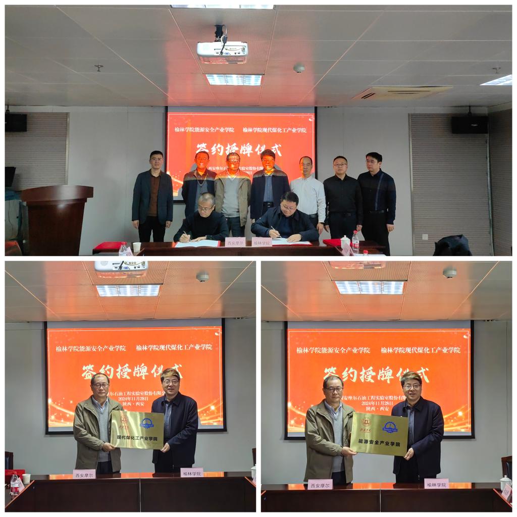 在西安摩尔石油工程实验室股份有限公司,张新柱一行在公司董事长、总经理韩勇的陪同下参观了公司,并听取了公司主要业务和重点项目介绍。座谈会由摩尔公司副总经理刘锋主持,公司董事长、总经理韩勇介绍了公司的基本情况、发展历程、主营业务和人才需求等内容。能源工程公司王进仕经理和摩尔公司副总经理刘锋代表双方签订了《能源安全产业公司 现代煤化工产业公司共建合作协议书》,张新柱和摩尔公司董事长韩勇共同为产业公司授牌。双方就现代产业公司的高质量共建,联合人才培养、科研创新和员工就业等进行了深入交流和探讨。摩尔公司副总经理赵国仙、总经理助理薛继军、安全总监段红文、检验评价室经理尚汉青、技术服务室经理范赵斌、人事主管刘睿参加了座谈。