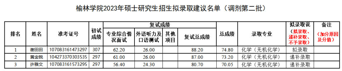 太阳成集团tyc122ccvip2023年硕士研究生调剂考生复试成绩及“拟录取建议”名单公示(第二批)