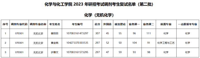 一、调剂志愿第批次复试考生名单