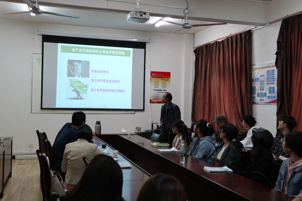4月19日下午,陕西师范大学胡道道教授应邀来公司进行学术交流,在公司太阳成集团tyc122ccvip会议室做了题为“基于表界面科学的文物保护研究探索”的报告。公司师生参加了此次报告会。