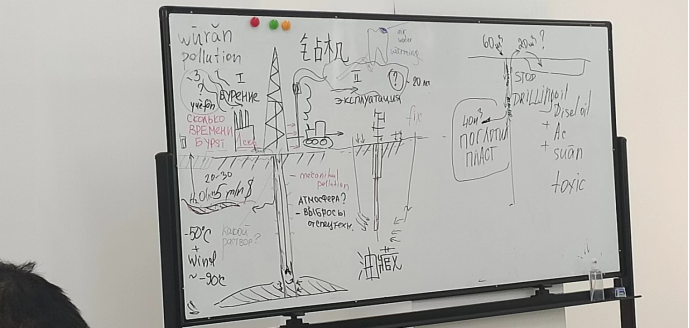 为了使同学们更好的了解课程内容,深入学习专业知识,Олеся老师还别出心裁地设计了她的课堂活动环节:为五十余位同学进行分组,由各个小组内部合作来绘制油田钻井示意图,接下来就让我们一起走进Олеся老师的课堂互动吧!