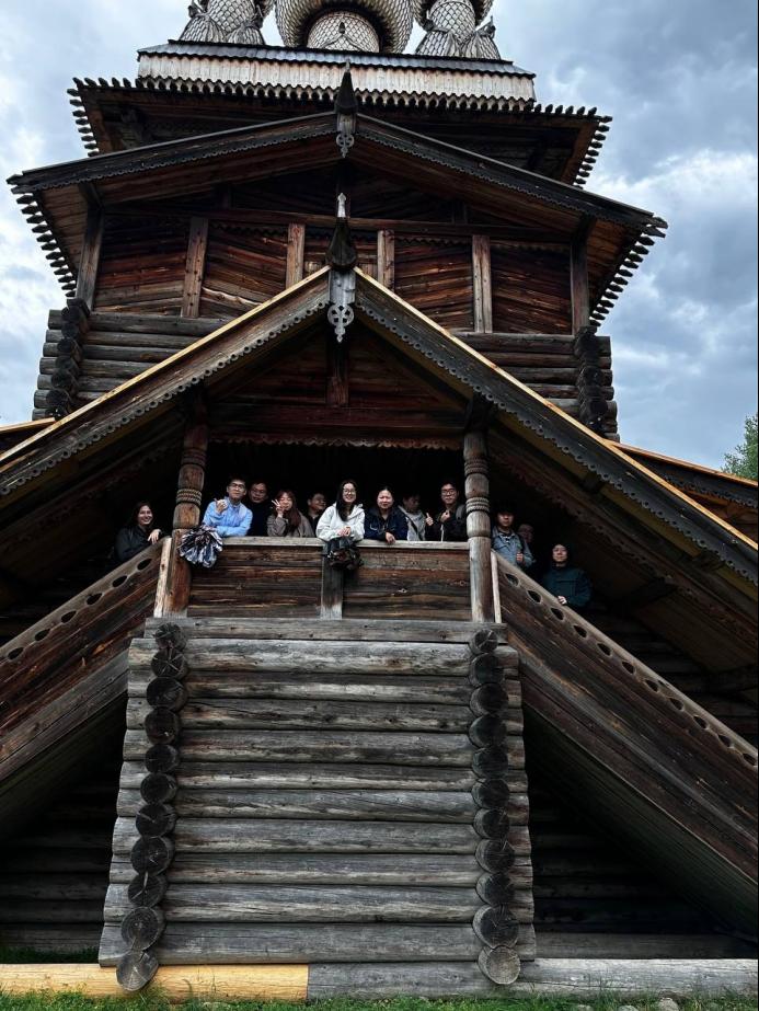 中国员工在与博物馆工作人员和参观者的交流中积极使用俄语,欣赏风景如画的森林,洁净的空气,雄伟的河流和俄罗斯的秋千。