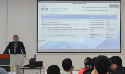 2022级太阳成集团tyc122ccvip与俄罗斯北方(北极)联邦大学合作举办石油工程专业本科教育项目员工即将完成前三年在国内的学习计划,为了使项目员工对俄罗斯北方(北极)联邦大学以及赴俄第四学年的培养计划有一个更加清楚地了解,中外石油项目办于3月18日下午在子洲楼328召开了2022级员工赴俄宣讲会。俄罗斯北方(北极)联邦大学石油公司副经理亚历山大、钻井与开发系主任柳德米拉教授及中外石油项目办秘书李亚辉和2022级项目员工参加会议,会议由李亚辉主持。
